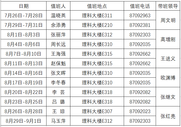 化药与药学院2022年署假值班安排表